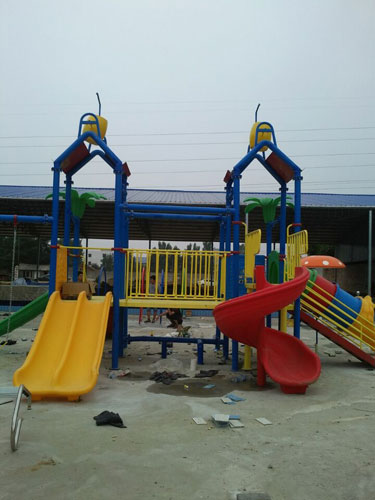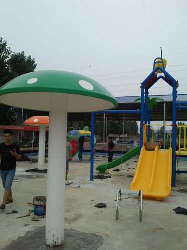 兒童游樂場內(nèi)有青蛙滑梯、彩虹圈、雨蘑菇、蘋果屋等。