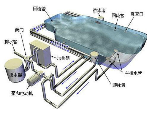 游泳池水處理設(shè)備的基本工作原理是持續(xù)不斷地循環(huán)抽水:從泳池抽到過濾和化學(xué)處理系統(tǒng),然后再送回泳池。這樣,抽吸系統(tǒng)可以使泳池中的水較為干凈,基本無污泥、垃圾和細(xì)菌。一些泳池還有加熱器,可以使水溫保持恒定。