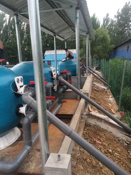 對(duì)于正常的游泳池溢流水,如要處理,就先進(jìn)行混凝處理,再經(jīng)過濾、游泳池循環(huán)水泵,然后再加藥消毒、最后進(jìn)入游泳池。主循環(huán)過濾罐的濾料一般采用石英砂,其壽命長(zhǎng),過濾效果好。