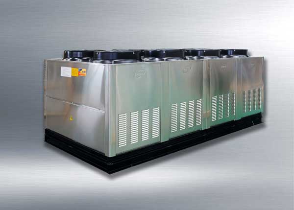 我公司公司與國外研發(fā)中心共同研發(fā)的空氣源熱泵熱水機組全部采用非外露封閉式V型結(jié)構(gòu),目前在國內(nèi)是唯一一家。該結(jié)構(gòu)采用側(cè)下進風(fēng)形式的V型結(jié)構(gòu),此結(jié)構(gòu)采用三層換熱,換熱能力高,保證設(shè)備換熱達到了極限(壓縮機及其他附件工作時產(chǎn)生的熱量得到有效回收利用),并可以實現(xiàn)自由的無縫拼接,機組之間不需要距離要求,更不受冬季的風(fēng)向等外部環(huán)境影響,效率更穩(wěn)定。