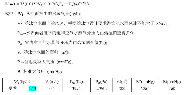 3、泳池除濕計(jì)算
