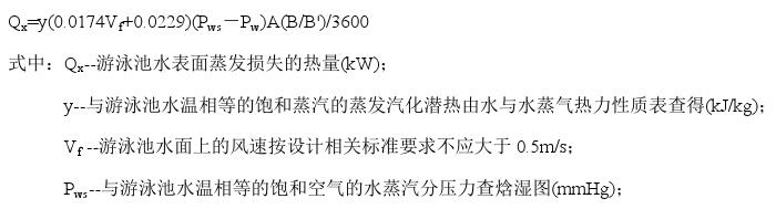 (1)游泳池水表面蒸發(fā)損失的熱量,按下式計(jì)算: