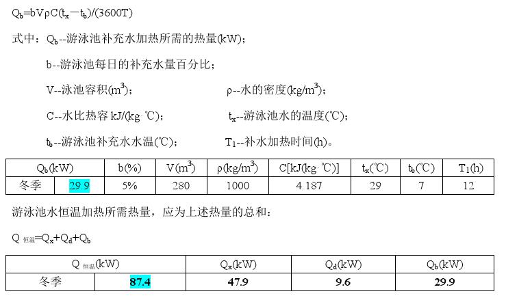 (3)游泳池補(bǔ)充水熱負(fù)荷計(jì)算