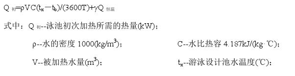 游泳池補(bǔ)充水加熱所需的熱量,應(yīng)按下式計(jì)算:
