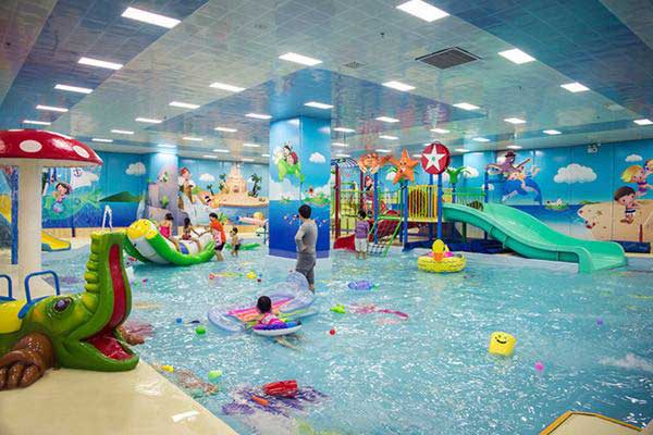 4、游泳區(qū),水深2000px,為保證安全獨立成區(qū),主要提供兒童游泳以及相關的培訓,由專門的工藝軟化,保證兒童游泳的安全性。