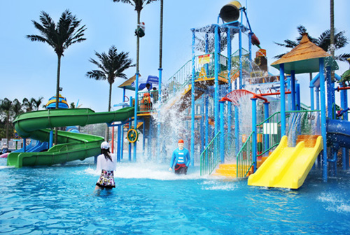 水上樂園設(shè)備:水寨是以加勒比海盜為主題的中型互動水上城堡,占地面積約400平方米,高9米,5道滑梯,1個中型翻桶。