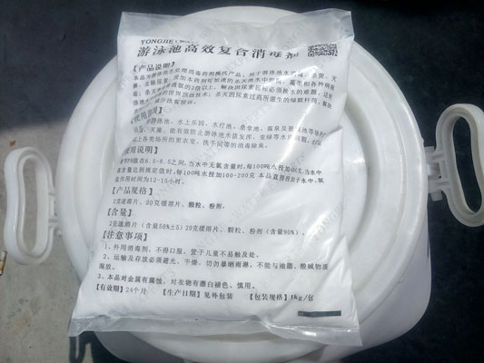 游泳池消毒劑包括:游泳池消毒片、游泳池消毒粉、游泳池消毒顆粒