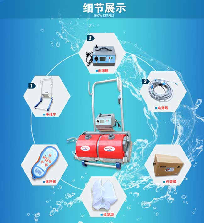 作為合格的水質管理員應知道泳池水處理中有一項池底清潔處理工作必須用到游泳池吸污機,也叫水下吸污機,水龜?shù)�,主要針對池水中的皮屑、頭發(fā)、樹葉、塵埃等臟物進行清潔,使水清澈透明。